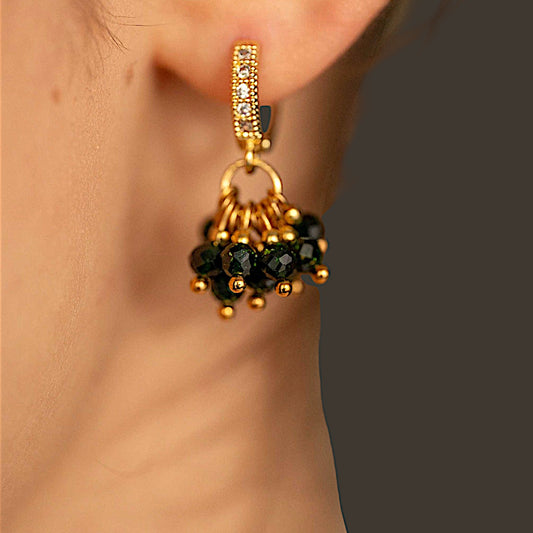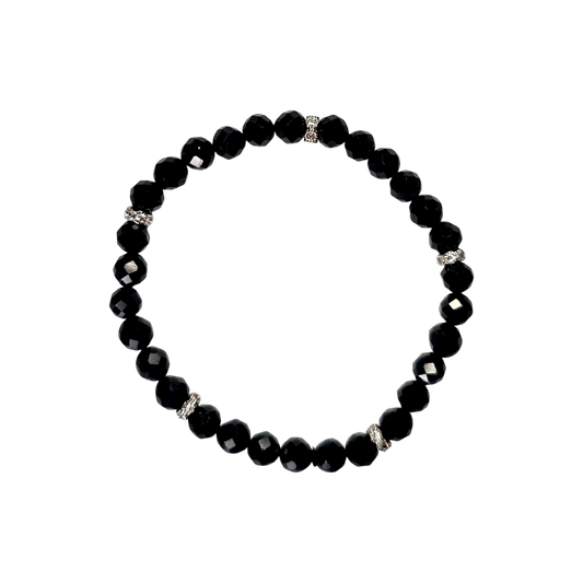 🖤 Schmuckset aus schwarzem Turmalin mit Strass-Zwischenperlen – Eleganz trifft Schutzenergie ✨