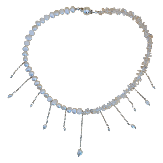 Elegantes Schmuckset aus Süßwasserperlen & Bergkristall