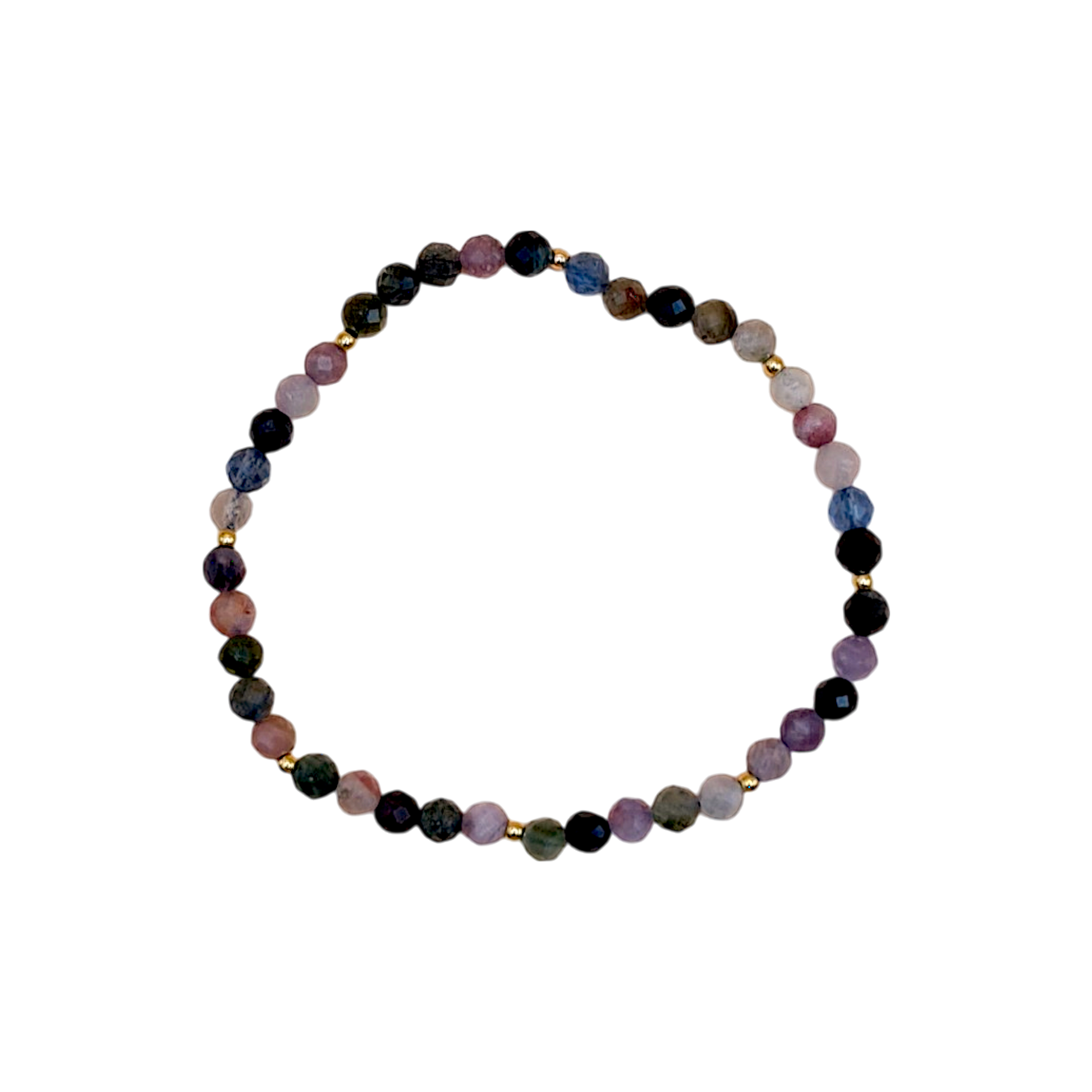 Veredelt wird das Design durch feine, vergoldete Zwischenperlen und einen hochwertigen, vergoldeten Magnetverschluss an der Kette. Das Armband ist auf elastischem Band gearbeitet und passt sich perfekt dem Handgelenk an – für maximalen Tragekomfort.